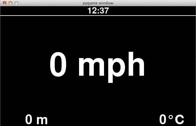You can see that this is actually being run on a Mac, which is good for editing the display layout, maybe doing some keyboard based control later, but the actual display needs to run on the Pi connected to the glasses.
